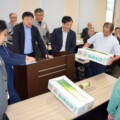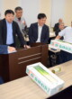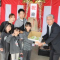 【かづの】かづの北限の桃を贈呈し、作柄を報告 -