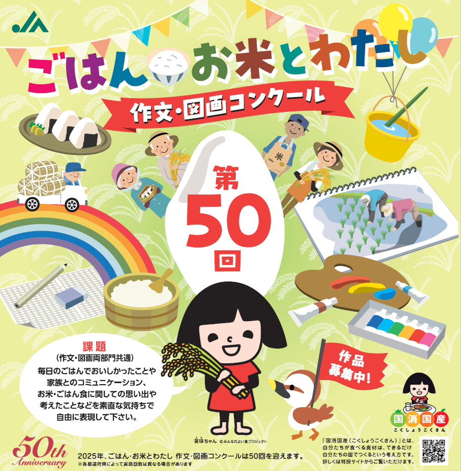 2025年度(令和7年度)第50回「ごはん・お米とわたし」作文・図画コンクールの受賞作品が発表され、秋田県内からは3点が優秀賞を受賞しました。