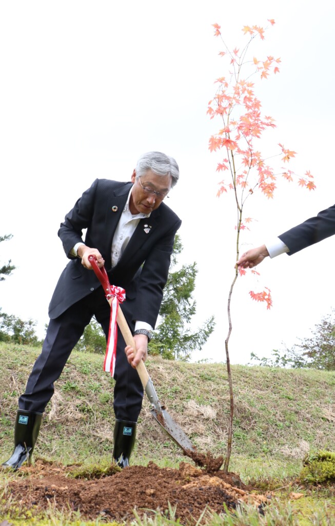 同施設がある東由利地区は、2024年に大雨で深刻な被害を受けた地域でもあり、復旧への願いも込め、広葉樹を植樹して「森」を未来へつなぎ、「いこいの森」利用者に四季折々の景観を楽しんでもらえるようにとの想いも込めて実施されました。