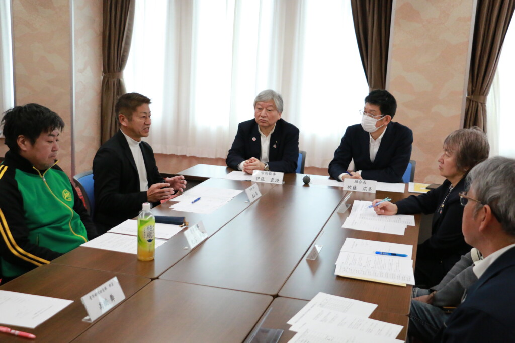 同日は女性部役員7人、青年部盟友9人、JA秋田なまはげの常勤役員6人、職員6人が参加。女性部と青年部が顔を合わせる機会は少なく、初対面の参加者も多かったことから、冒頭では自己紹介を行い、栽培している作物や事業形態などを紹介し合いました。